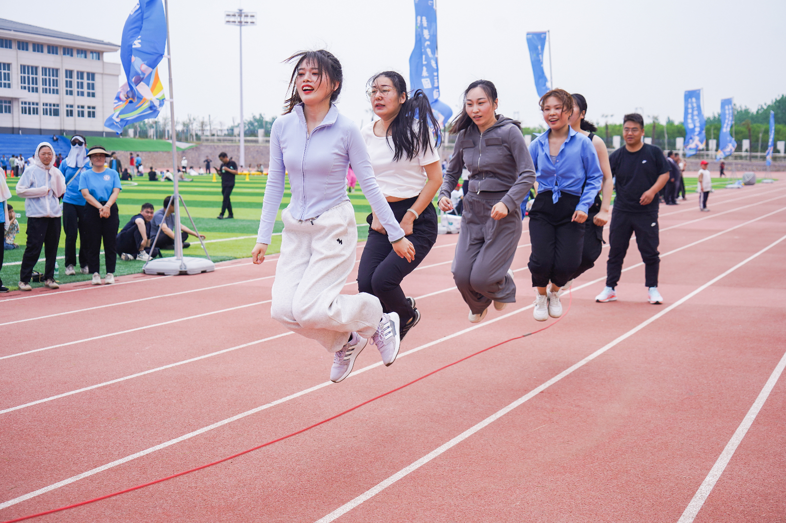 整體賽事集競(jìng)技性、趣味性和參與性于一體。既有展現(xiàn)個(gè)人實(shí)力的100米賽跑、乒乓球賽、羽毛球賽、個(gè)人跳繩、象棋、五子棋、跳棋、爬山等個(gè)人賽事;也有考驗(yàn)團(tuán)隊(duì)協(xié)作的籃球賽、拔河賽、100×4接力賽、集體跳繩等集體賽事;還特別設(shè)置了龜兔賽跑、同舟共濟(jì)、螞蟻搬西瓜、企鵝快跑、飛檐走壁、英雄歸來、猛龍過江等趣味賽、親子賽;賽場(chǎng)上,運(yùn)動(dòng)員們不斷挑戰(zhàn)自我,刷新高度,展現(xiàn)出頑強(qiáng)的拼搏精神和良好的心理素質(zhì)。